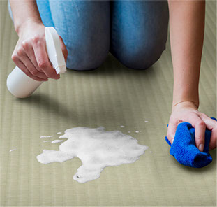 ※農(nóng)藥、煤油、嬰兒油、苯等可能會(huì)導(dǎo)致榻榻米膨脹。此外,熱水壺、鍋、熨斗和香煙也可能導(dǎo)致榻榻米融化。